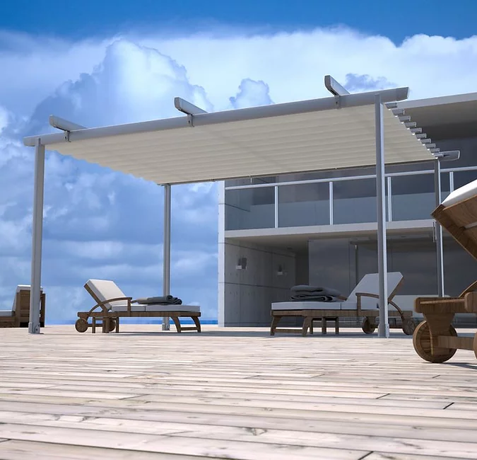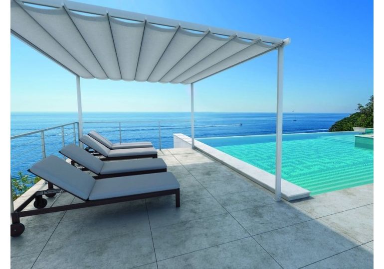 The Surya is a sophisticated roman roof shading system that will add class and style to any outdoor area.